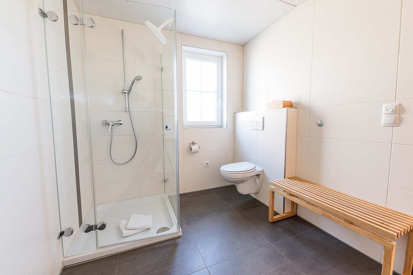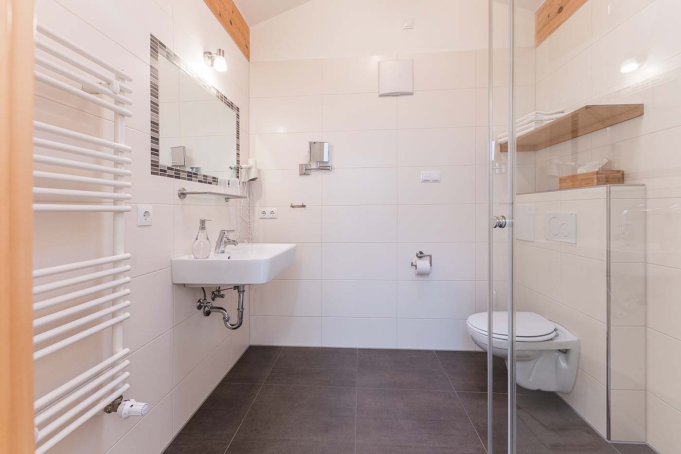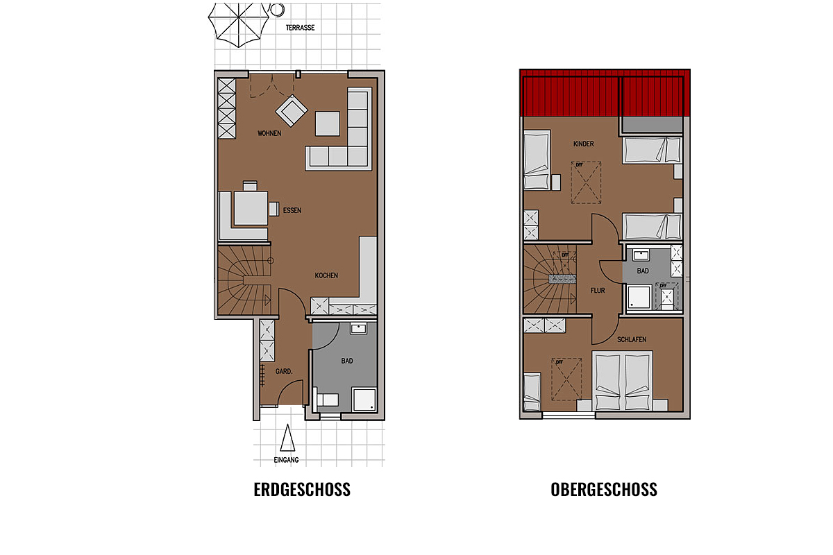 - Zwei Badezimmer mit jeweils Dusche und WC.