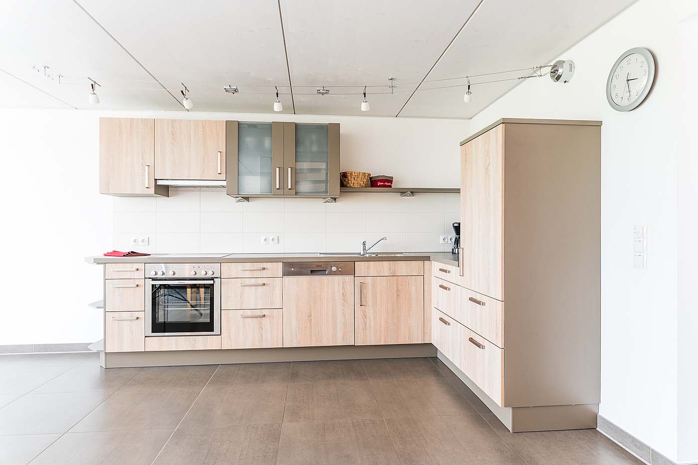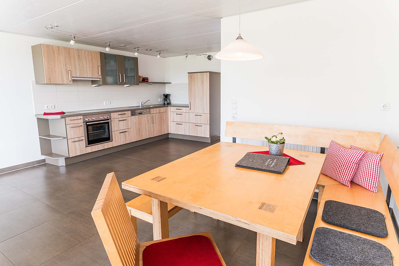 - Angrenzende große offene Küche mit Spülmaschine und gemütlicher Essecke.
