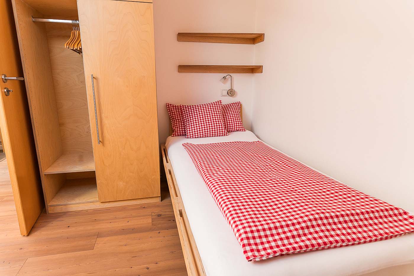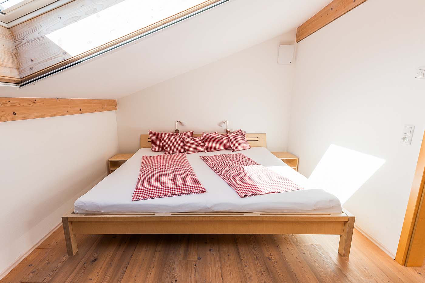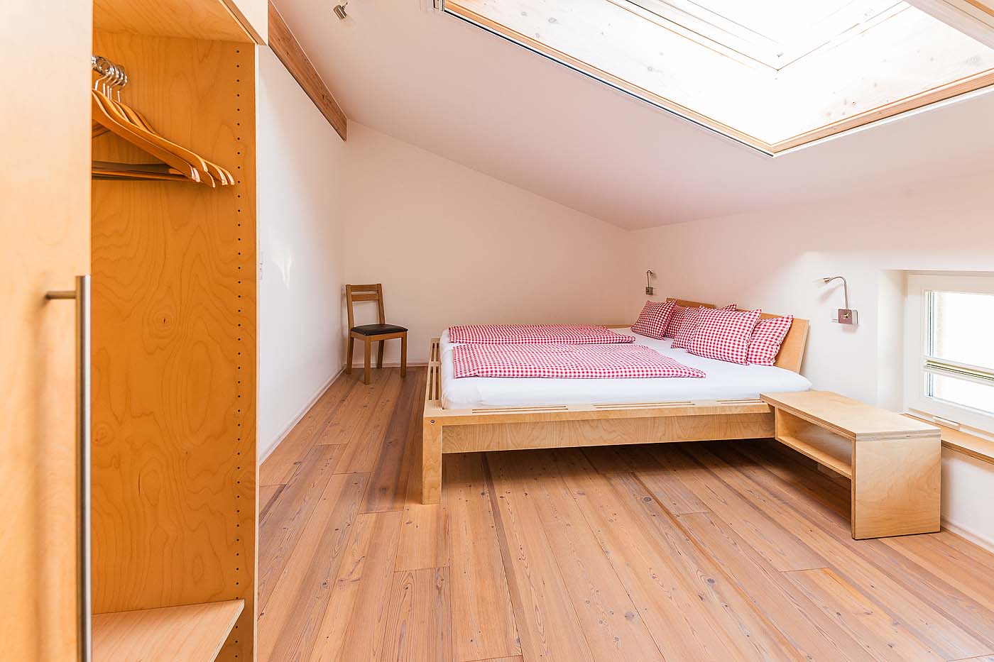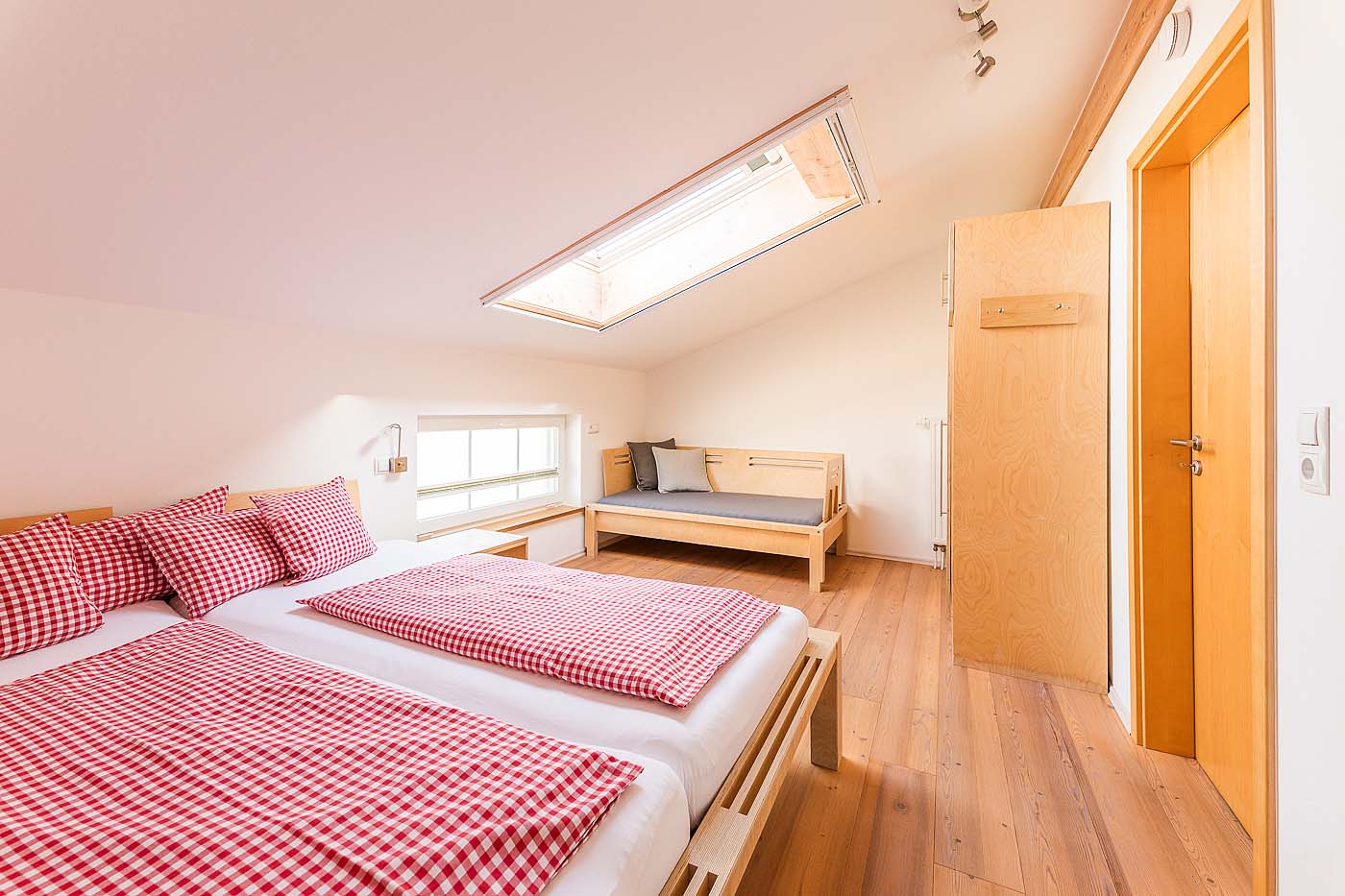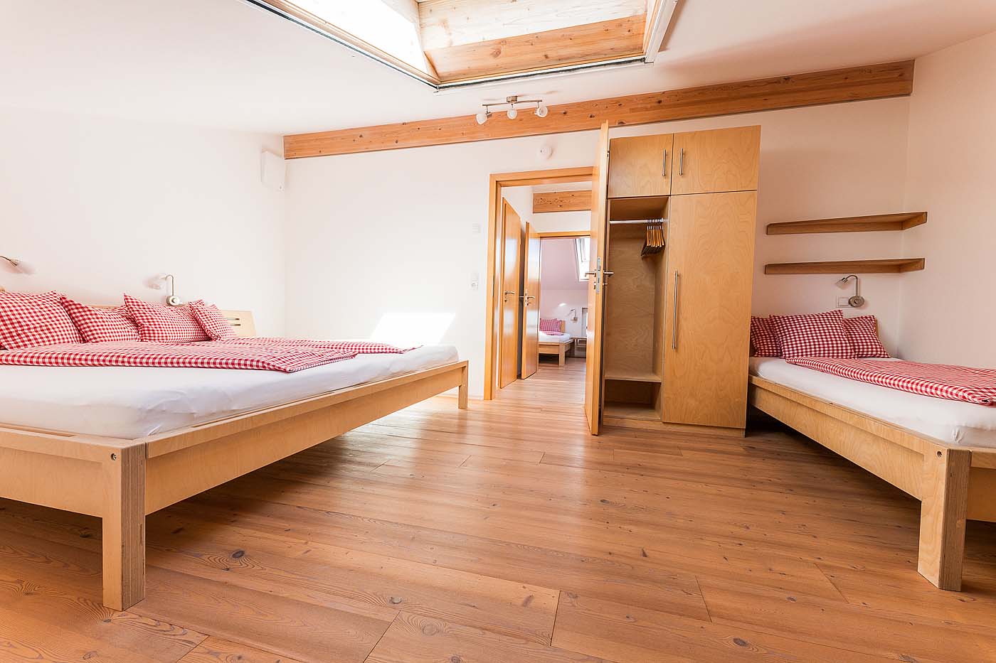 - Ein Schlafzimmer mit Familienbett 240x200cm und einem Einzelbett.